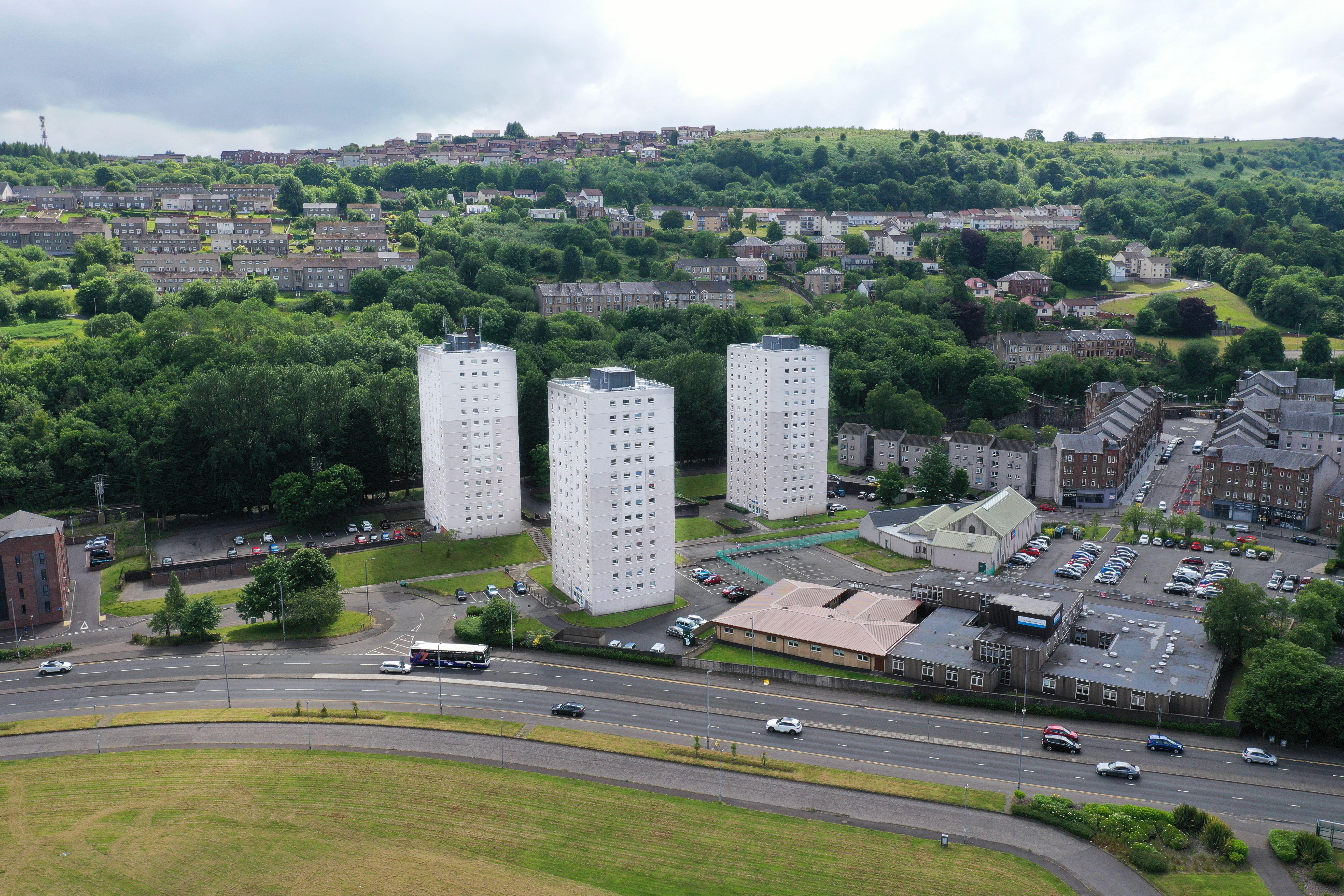 Starting by the gates of ferry builder Ferguson Marine, the Port Glasgow street rises sharply and relentlessly towards the residential rows of Bogleston and Bardrainney, Slaemuir and Devol. By the time you reach the houses at the very top of the town, backing onto wood and field, you’ve reached 160 metres above sea level. Wind whipped up from the Clyde below lashes the rain onto the face and cuts through the thickest jacket. To say it’s cold up there is putting it mildly.